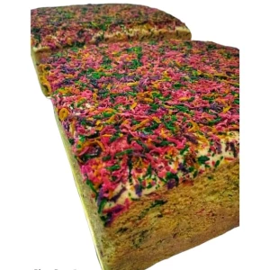 Kek tradisi hujan panas menggunakan rampai kelapa berwarna-warni buatan sendiri